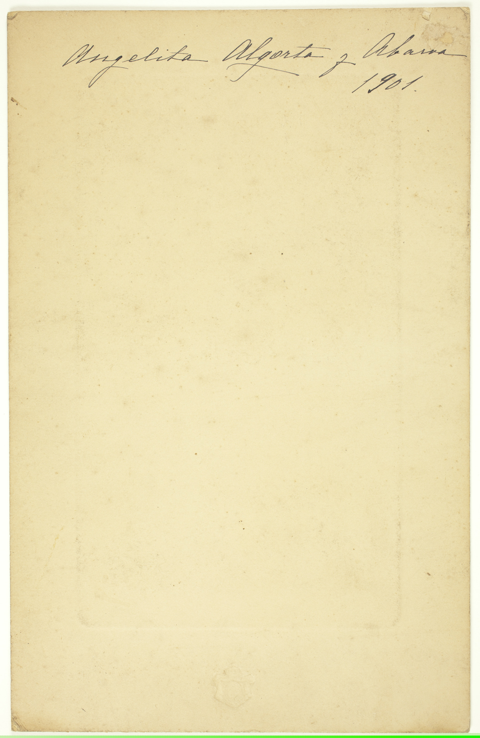 Neskatila erretratua | Angelita Algorta y Abaroa 1900 [ms. v.]; Franzen, Fotografía Artística, Príncipe 11, Madrid [imp. r.] |