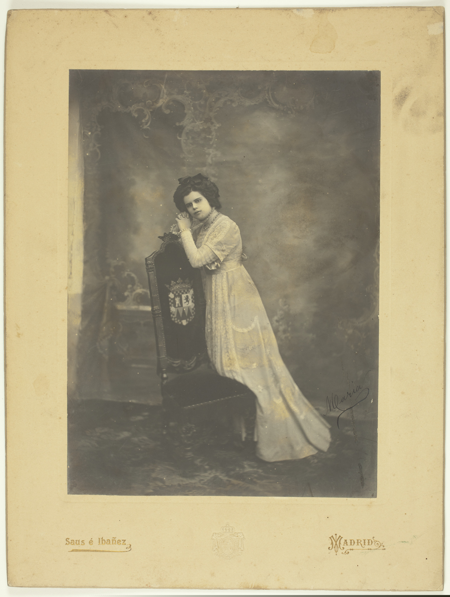 | Emakume erretratua | [sinadura:] Maria [ms. r.]; María Gutiérrez y Montero de Espinosa, de Almendralejo, 1906 [ms. v.]; Saus e Ibañez, Madrid [imp. r.] |