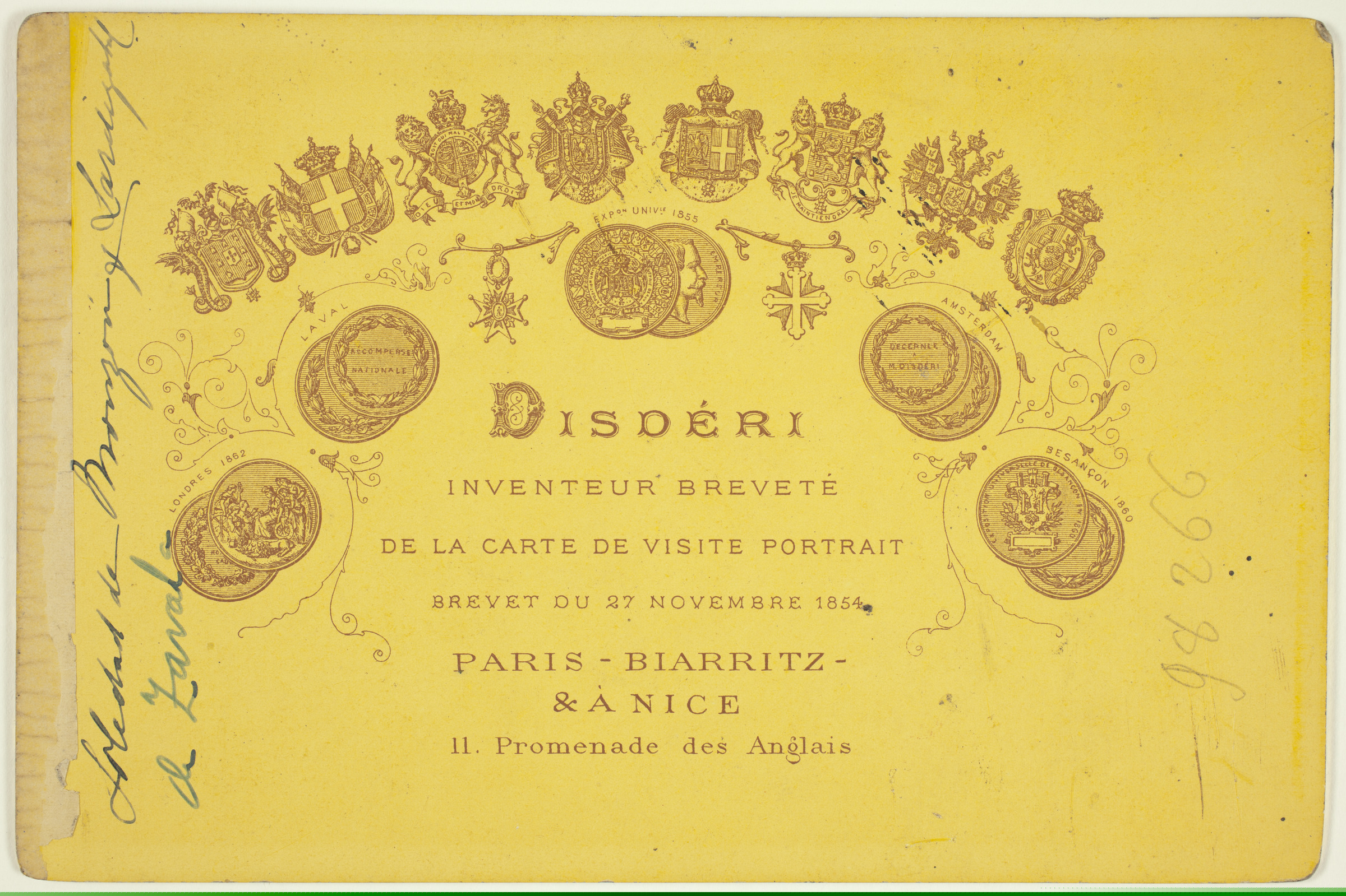 | Emakume erretratua | Un souvenir du 11 Juin 1888, [sinadura:] Soledad [ms. r.]; Soledad de Monzón y Lardizabal de Zavala [ms. v.]; Disdéri, Photographe [imp. r.]; Disdéri, inventeur breveté de la carte de visite portrait, Brevet du 27 Novembre 1854, Paris, Biarritz & à Nice, 11 Promenade des Anglais [imp. v.] |