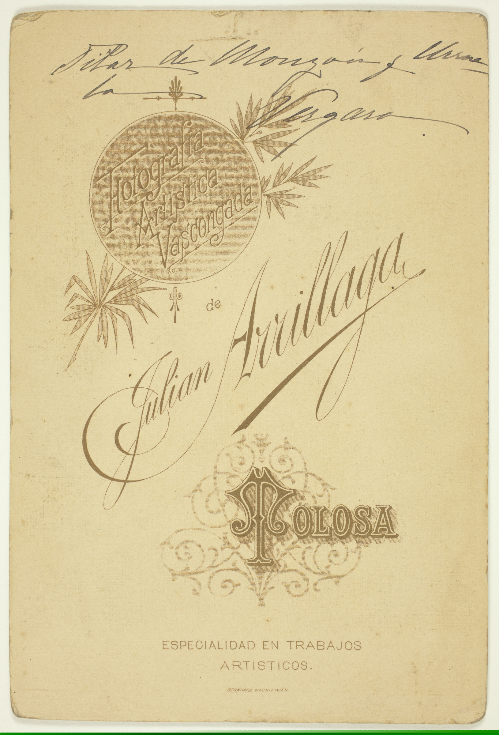 | Ume erretratua bildotsarekin | [sinadura:] Pichita, 1895 [ms. r.]; Pilar de Monzón y Urruela, Vergara [ms. v.]; Julián Arrillaga, Tolosa [imp. r.]; Fotografía Artística Vascongada de Julián Arrillaga, Tolosa [imp. v.] |