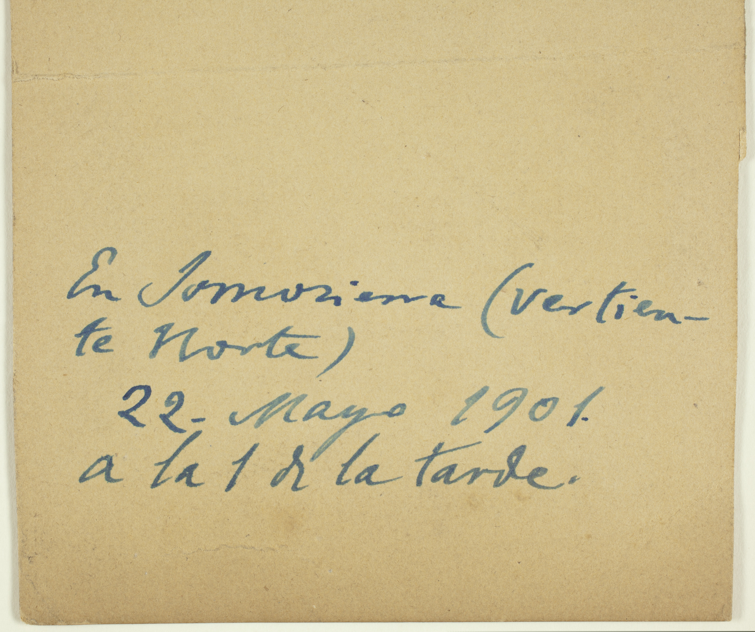 | Kotxeak eta jendea etxe baten aurrean | En Somosierra (vertiente norte), 22 - Mayo 1901, a la 1 de la tarde [ms. v.] |