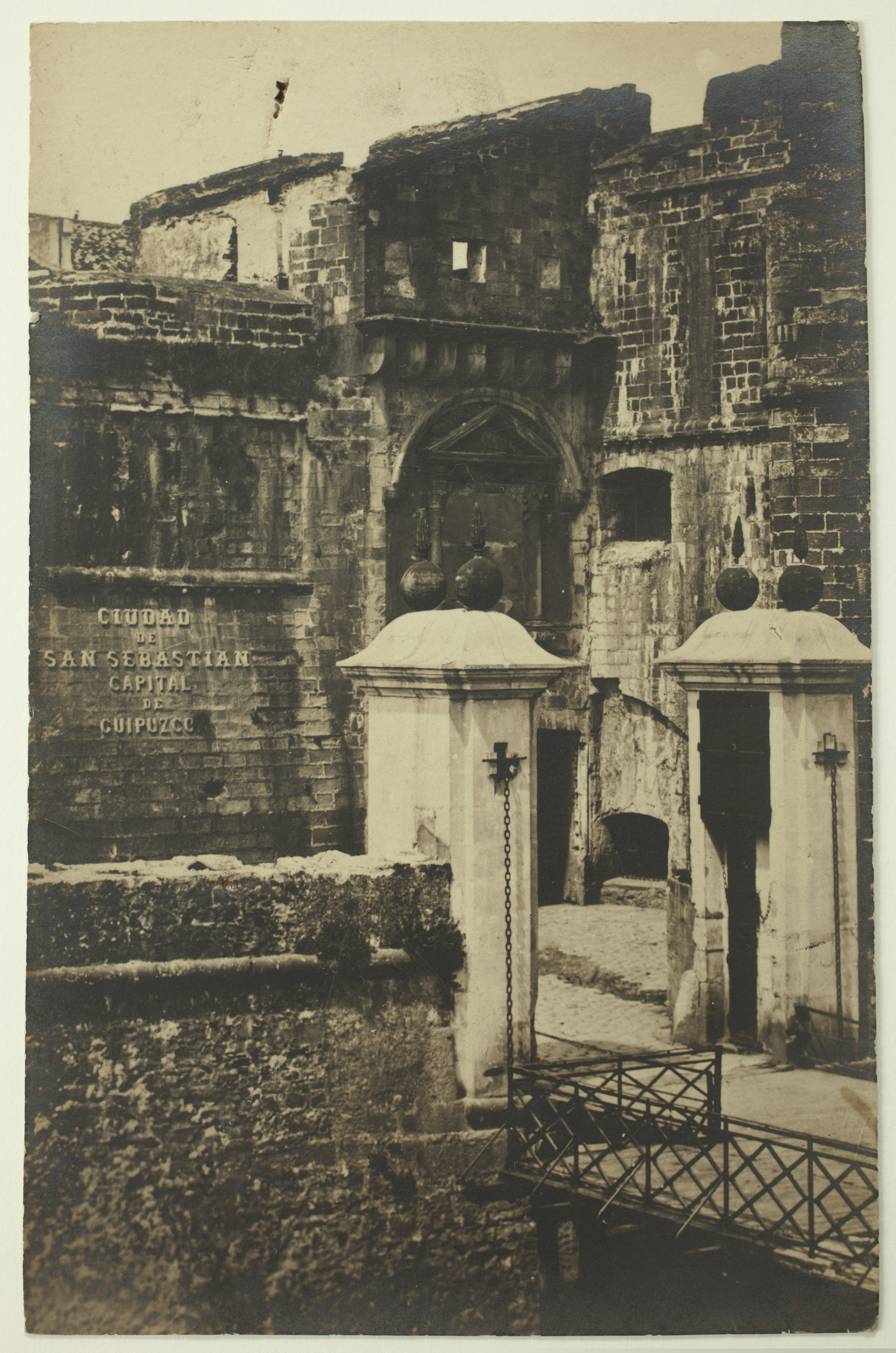 Donostiako harresiaren atea; paretan irakurtzen da: Ciudad de San Sebastián, Capital de Guipuzcoa | Puerta de tierra ó sea la entrada a la Ciudad [ms. v.] |