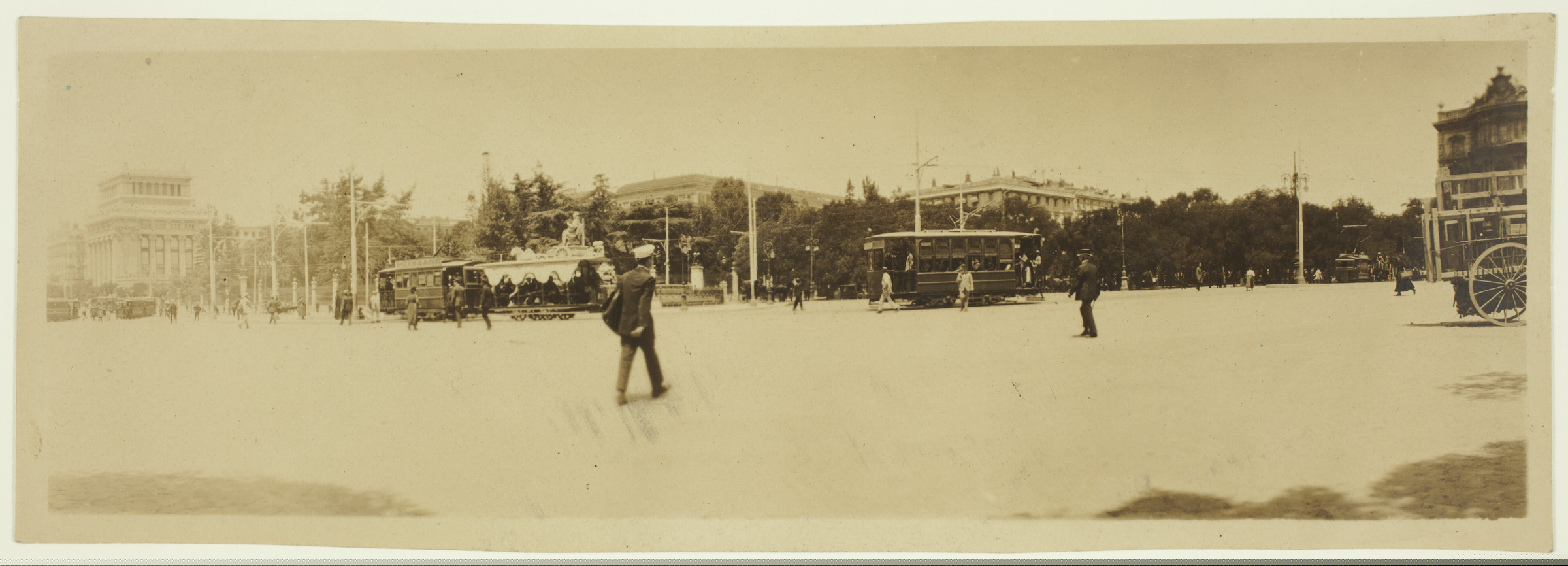 | Madrideko Cibeles plazaren bista: tranbiak | Madrid 4 Junio 1920, al mediodía, la plaza de la Cibeles [ms. v.] |