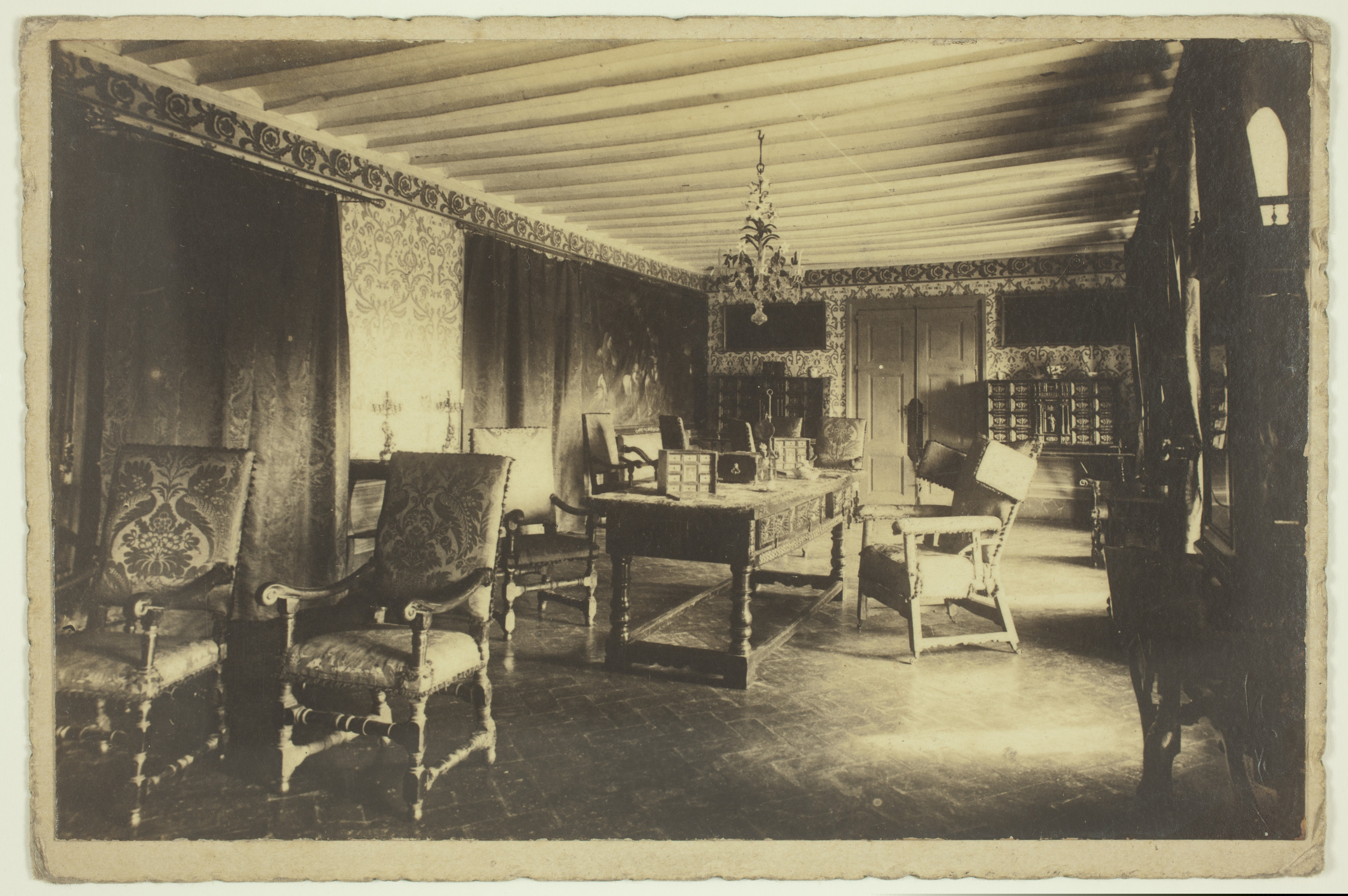 Egongela | Uno de los salones de la Casa de los Fernández de Navarrete, Abalos (Logroño), 3-X-18 [ms. v.]; A. Muro, Fotógrafo, Bretón de los Herreros, 5, principal, Logroño [imp. v.] |