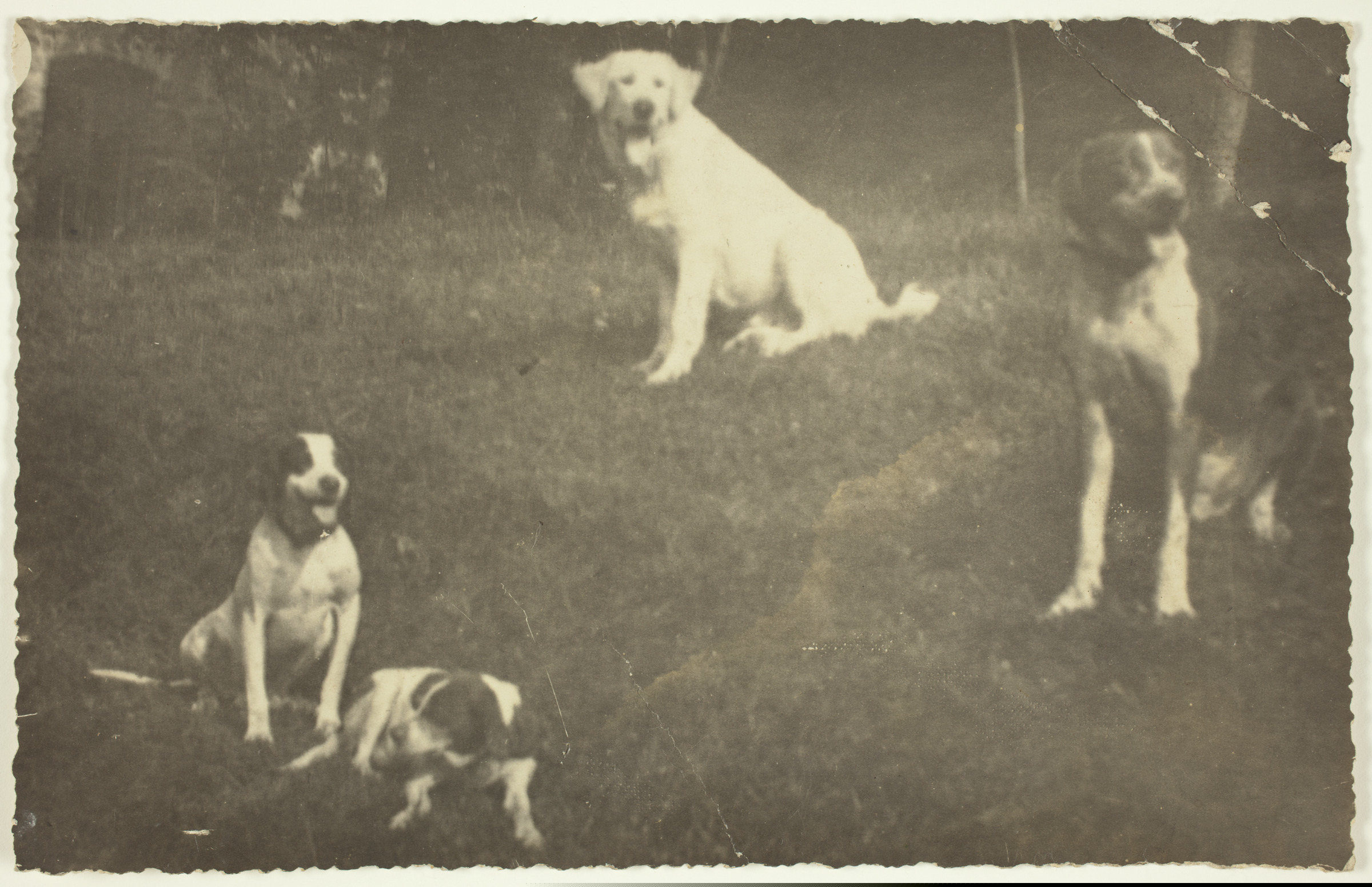 | Txakurrak | En Santa Ana - Vergara - verano de 1895, De izquierda a derecha: "Atos" pointer, hijo de "Lord" y "Miss" de 6 años; "Lord", echado, pointer, padre de "Atos", de 12 años; "Patín" mastín blanco de los Pireneos [sic] de 1 año; "Erdu" mestizo de danés y sabueso (gran perro de guarda) de 5 años [ms. v.] |