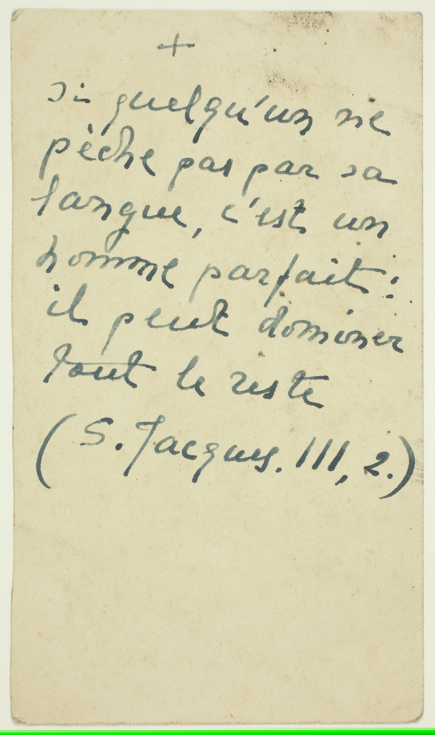 | Irudi erlijiosoa: Ama Birjina | Si quelqu'un ne pèche pas par sa langue, c'est un homme parfait: il peut dominer tout le reste (S. Jacques. III, 2) [ms. v.] Nuestra Señora del Sagrado Corazón. HSM 1152 [imp. r.] |