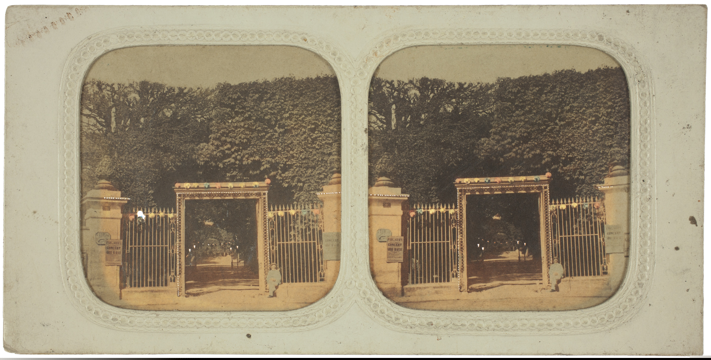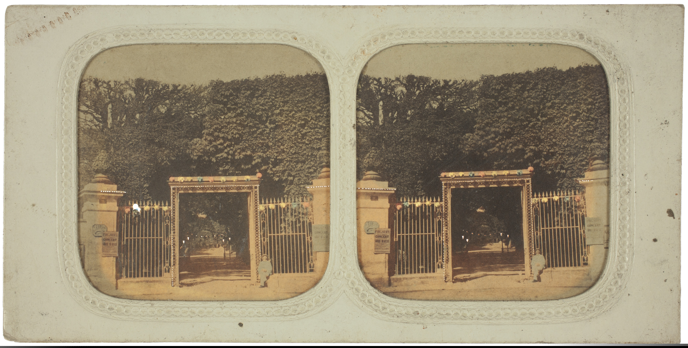 | Lorategiaren atea eta burdinesia; atearen alboan gizona eserita | Parc de Sceaux [ms. v.] |