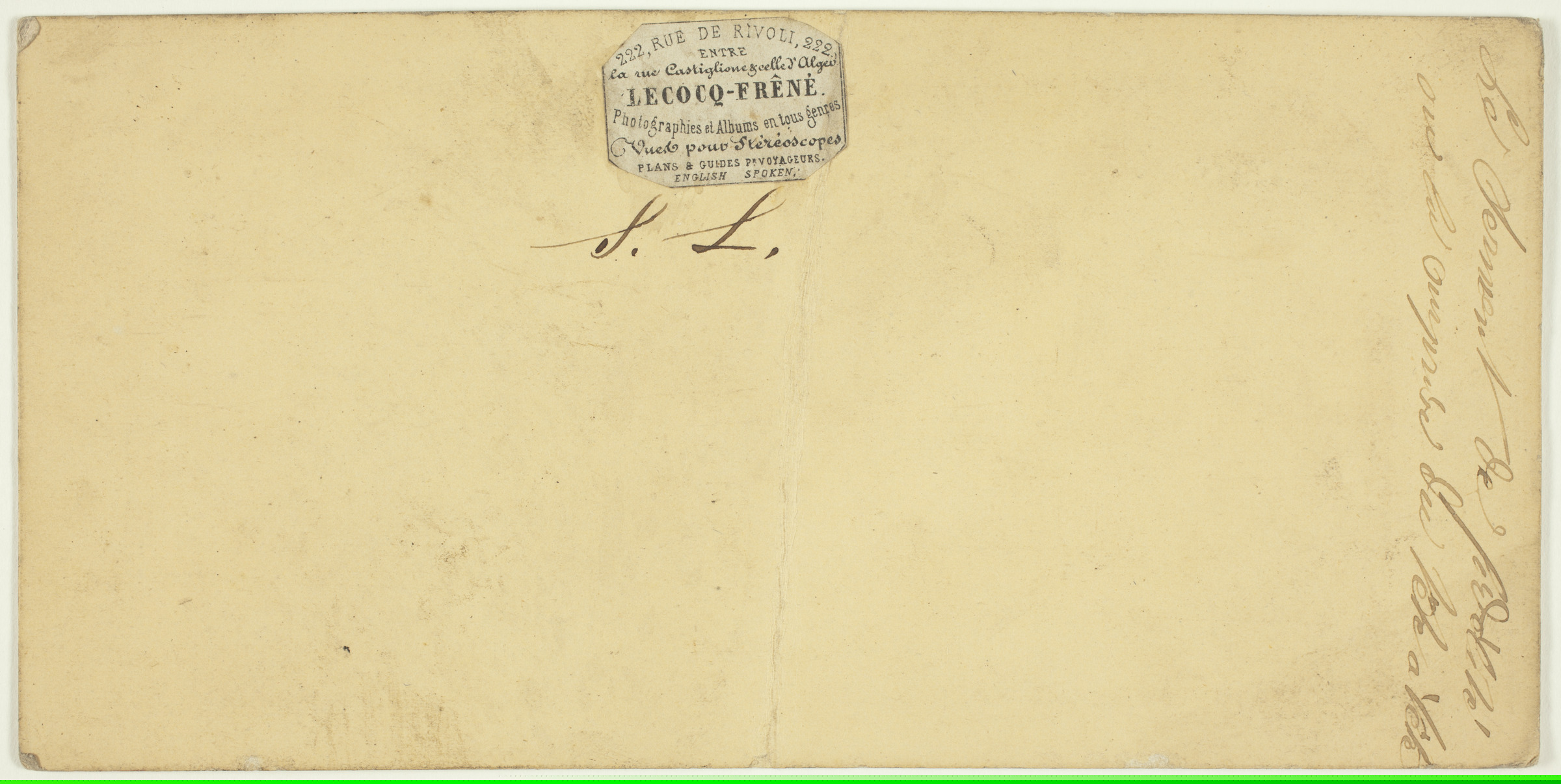 | Hiru ume lorategian: lehenengo planoan neskatila anderearekin eta mutikoa soldadu jantzita, bigarren planoan mutikoa polizia kapelarekin | Le serment de fidelité ou la surprise du tête à tête. S.L. [ms. v.]; 222 Rue de Rivoli, 222 entre la rue Castiglione & celle d'Alger, Lecocq-Frêné, Photographies et Albums en tous generes. Vues pour Stéréoscopes [...] [imp. v.] |