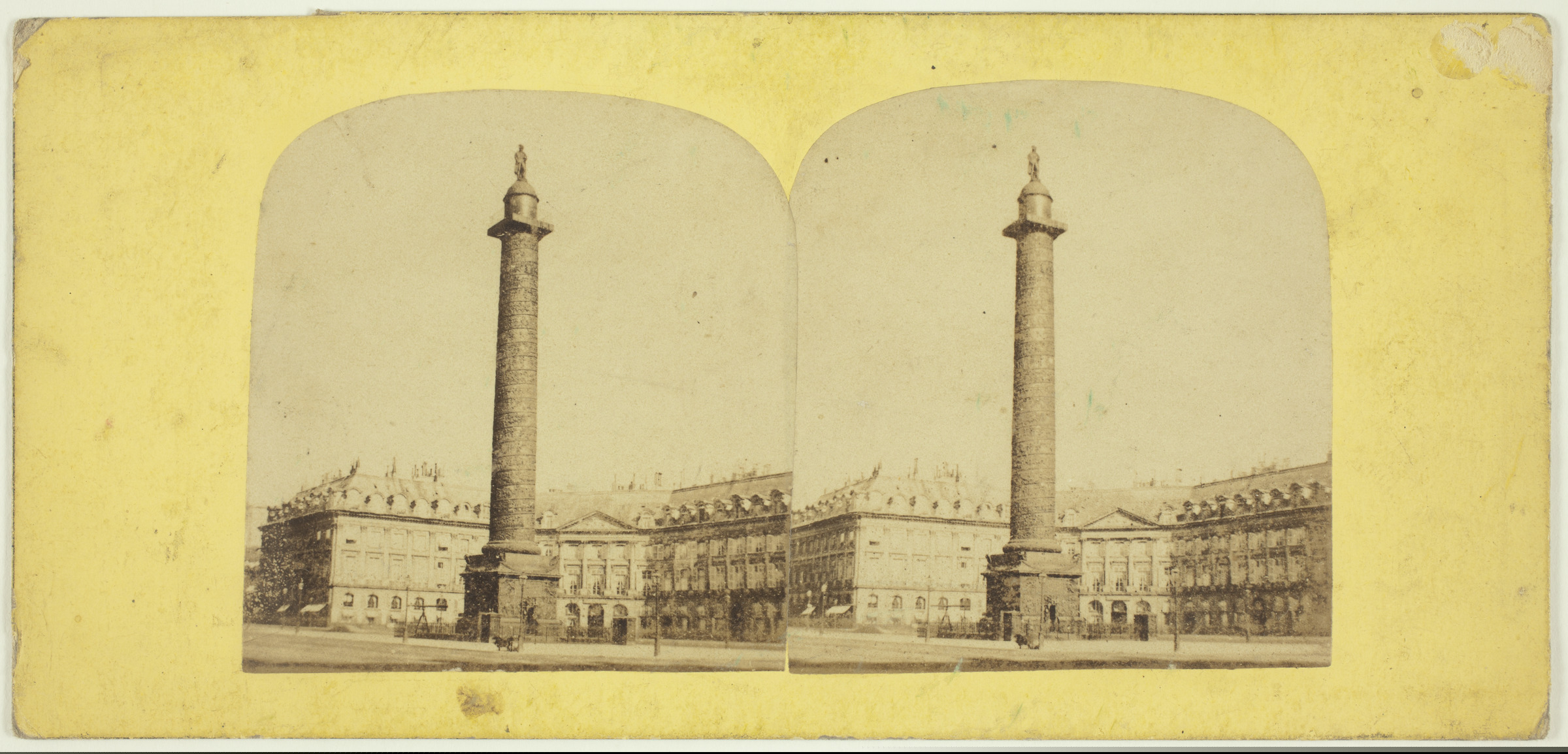 Parisko Vendôme plaza: lehenengo planoan zutabea, bigarrenean eraikuntzak | La colonne vemdome [sic]. S.L. [ms. v.]; 222 rue de Rivoli 222, entre la rue Castiglione et celle d'Alger, Lecocq-Frêné, Photographies et Albums en tous genres, Vues pour stéréoscopes [...] [imp. v.] |