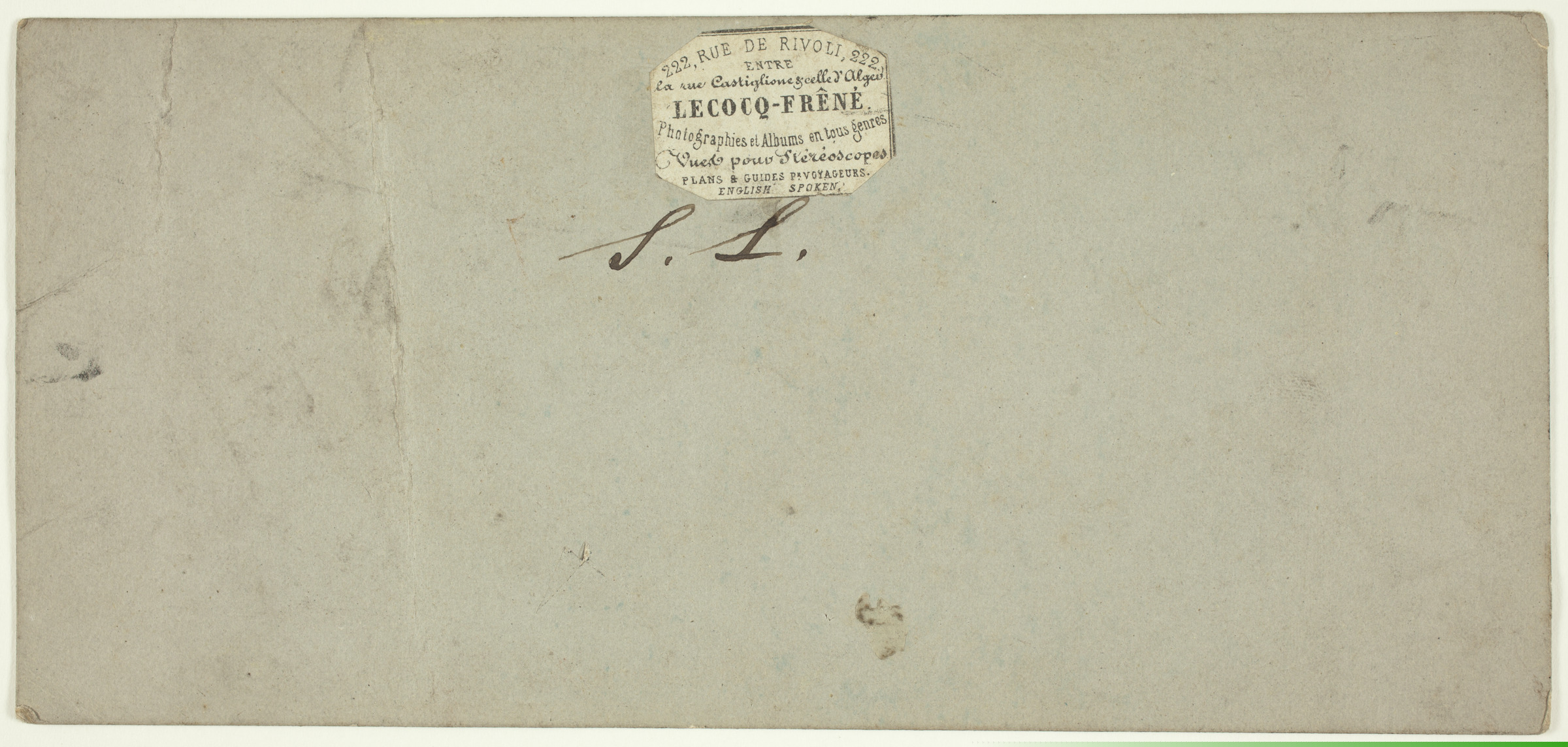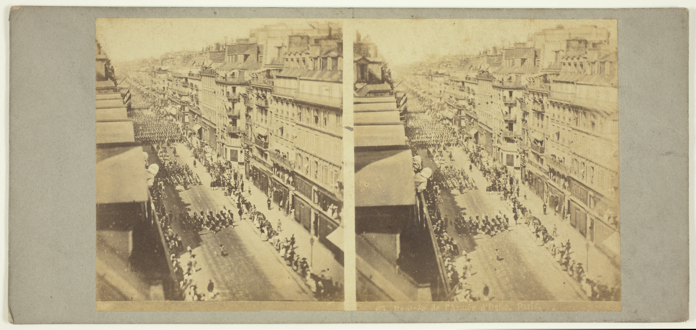 | Desfilea kalean zehar | S.L. [ms. v.]; 222 rue de Rivoli 222, entre la rue Castiglione et celle d'Alger, Lecocq-Frêné, Photographies et Albums en tous genres, Vues pour stéréoscopes [...] [imp. v.]; 63[?] Rentrée de l'Armée d'Italie. Paris [imp. r.] |