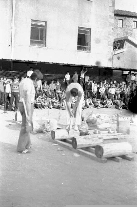 | Herri kirolak Seminarioko patioan: aizkolariak lanean |