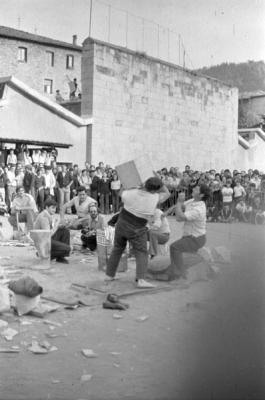| Herri kirolak Seminarioko patioan: harrijasotzailea lanean |