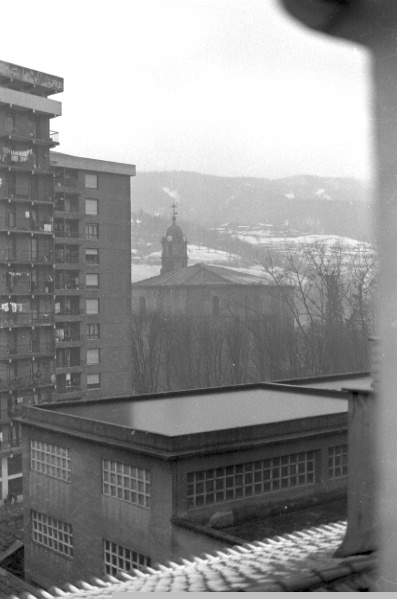 Bergarako bista Masterreka gainetik: Otazua lantegia, Simon Arrieta plazaren etxebizitzak, Santa Marina eliza |