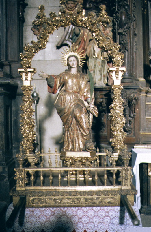 | Santa Marinaren irudia prozesiorako prestatuta Santa Marina elizaren aldarearen aurrean |