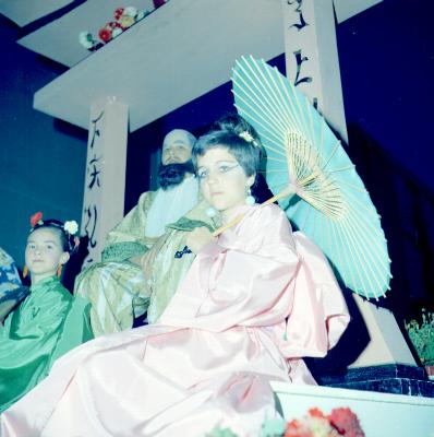 | San Martinen danborradako karroza: neska mutikoak japoniar jantzita |