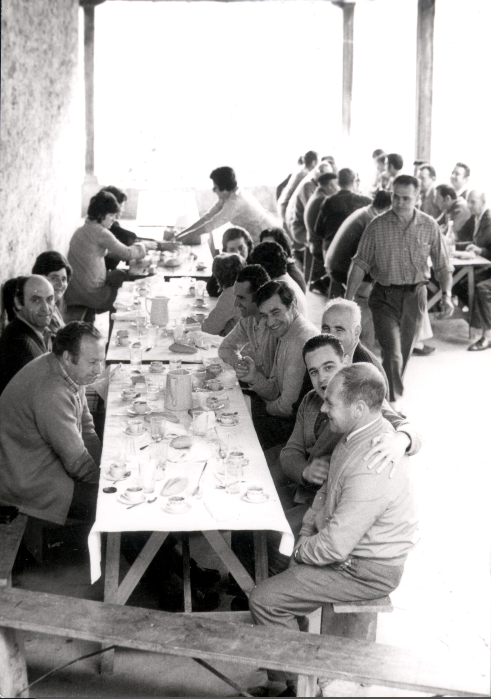 | Taldea bazkaltzen San Martzialeko arkupetan |