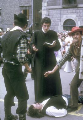 Pazkuetako estanpen lehiaketa: pelikula baten grabazioaren parodia; "La censura española" estanpa |