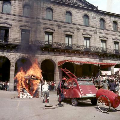 Pazkuetako estanpen lehiaketa San Martin plazan: suhiltzaileak |