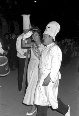 San Martinen danborradako sukaldaria eta dama Udaletxera sartzen |