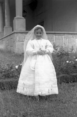 Neskatila erretratua Labegaraietako elizaren aurrean |