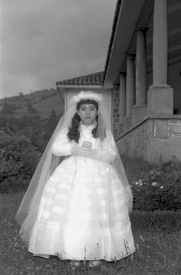 Neskatila erretratua Labegaraietako elizaren aurrean |