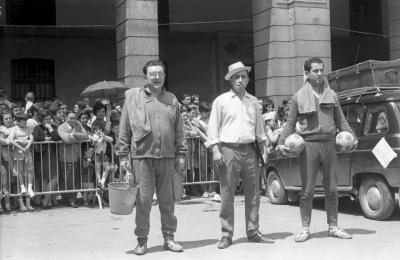 Pazkuetako estanpen lehiaketa San Martin plazan; futbol entrenatzaileak |