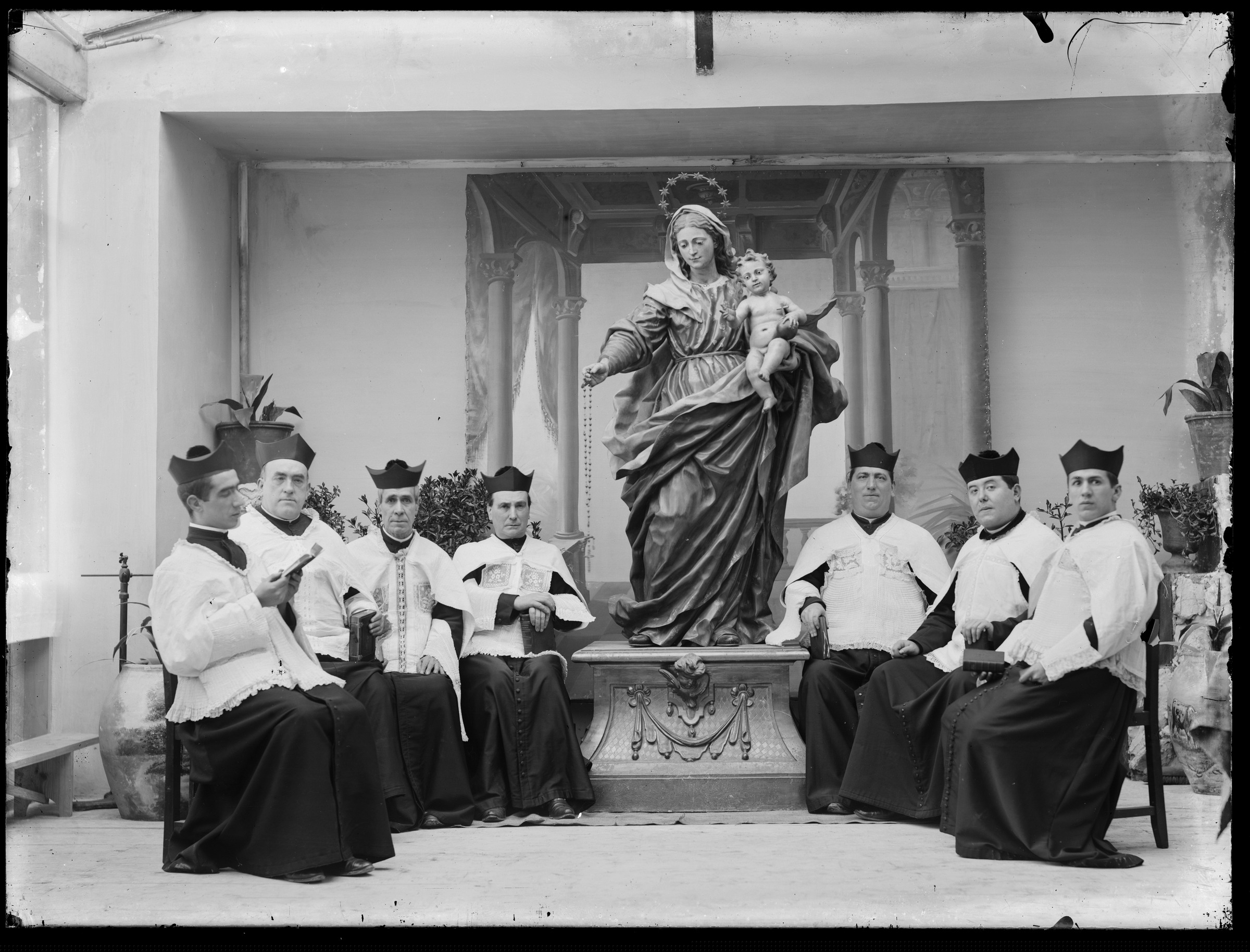 Zazpi apaizen taldea Errosarioko Amabirjinaren irudiarekin |