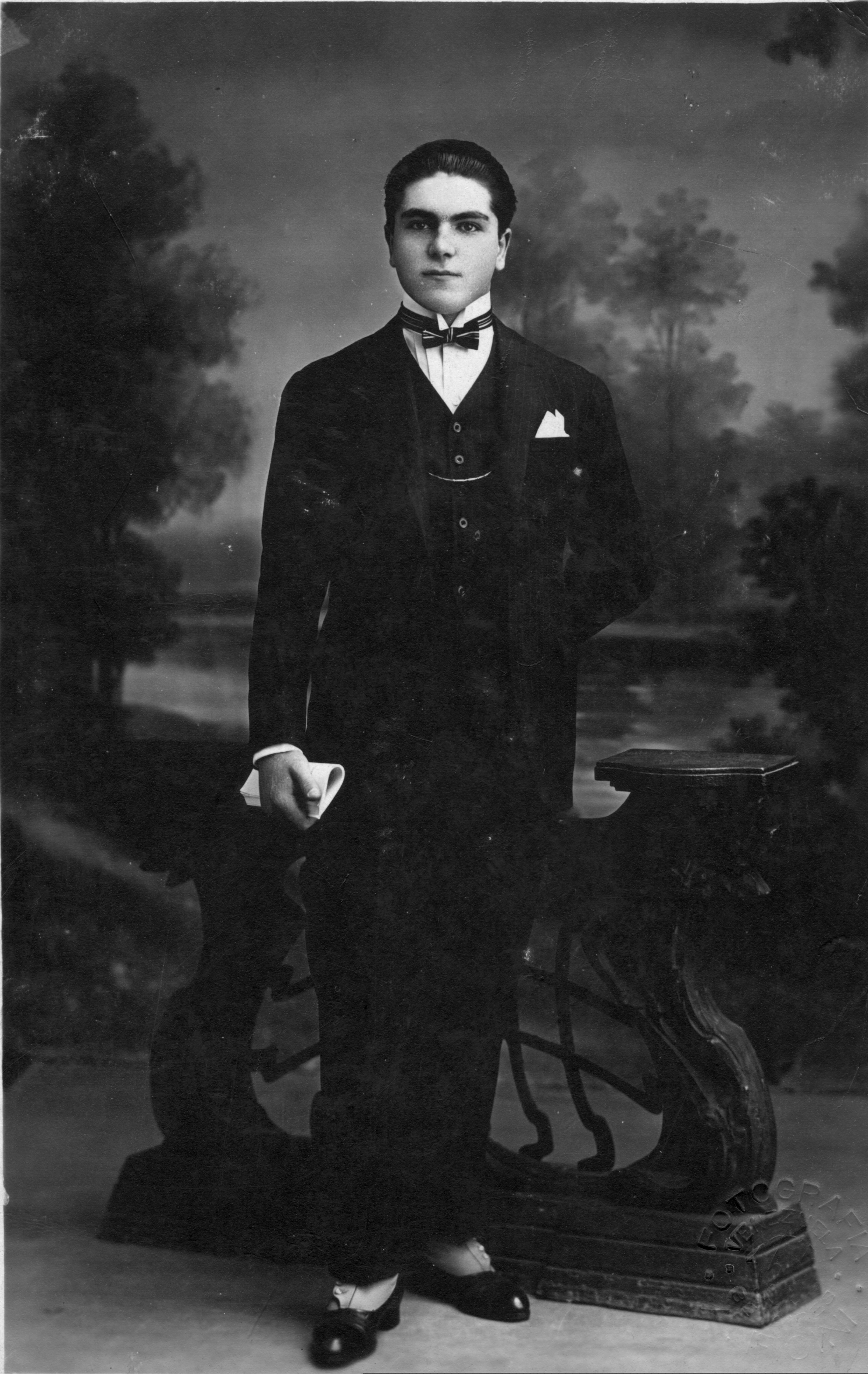 | Gizon gaztearen erretratua: txalekodun trajea eta polainak daramatza | Fotografía, A. Fioini, Venezuela [imp. r. sigilu sikua] |