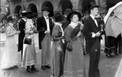 Antzinako jantzi eleganteak daramaten bikoteen desfilea San Martin Agirre plazan | 19 [ms.r./v.] |