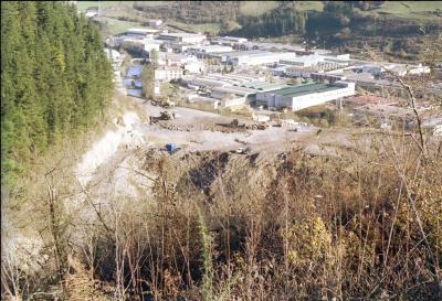 | Bista orokorra Lapatza ingurutik: aurrrekaldean A-1 autopista egiteko lanak , bigarren planoan San Lorentzo industria gunea |