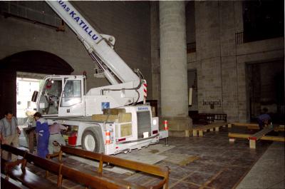 | Santa Marina eliza zaharberritzeko lanak: garabia elizaren barruan |
