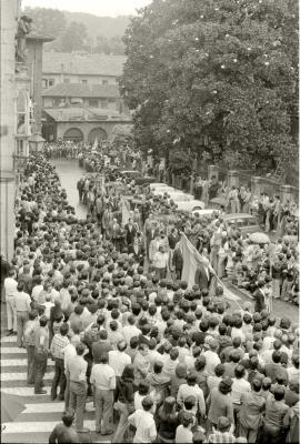 Foruen abolizioaren mendeurrena ospatzeko ekintza: Komenio kalea jendez gainezka eta herrien ordezkarien desfilea San Pedro elizaruntz |
