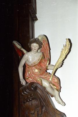 | Santa Marina elizako erretaula nagusian eskuman dagoen aingeru imajina |