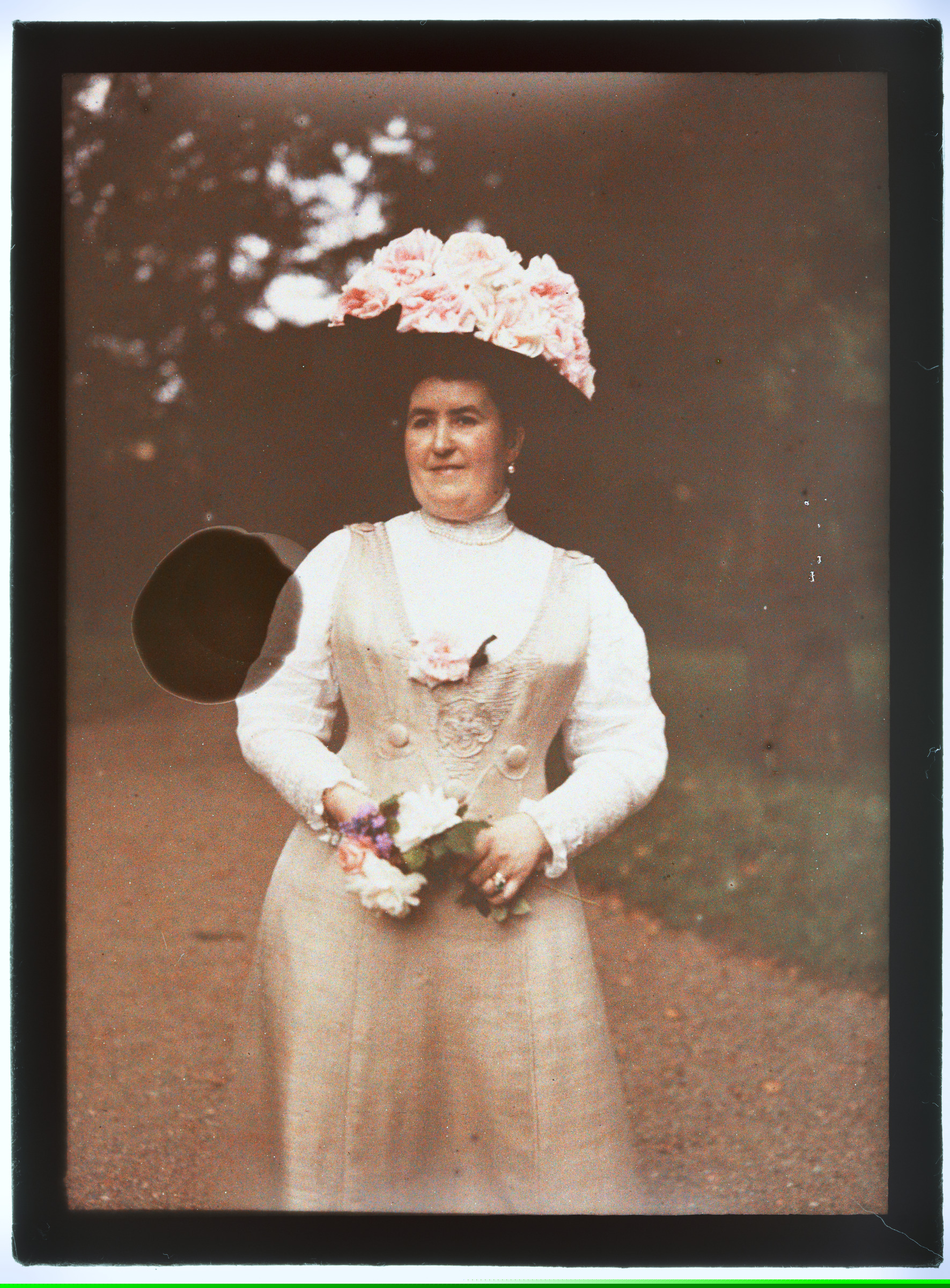 | Emakume erretratua lorategian loredun sonbreroarekin; bularrean eta eskuetan beste lore sorta bana darama | Vergara 29 Julio 1900. Ana Mª de Murua de Velasco [ms] |