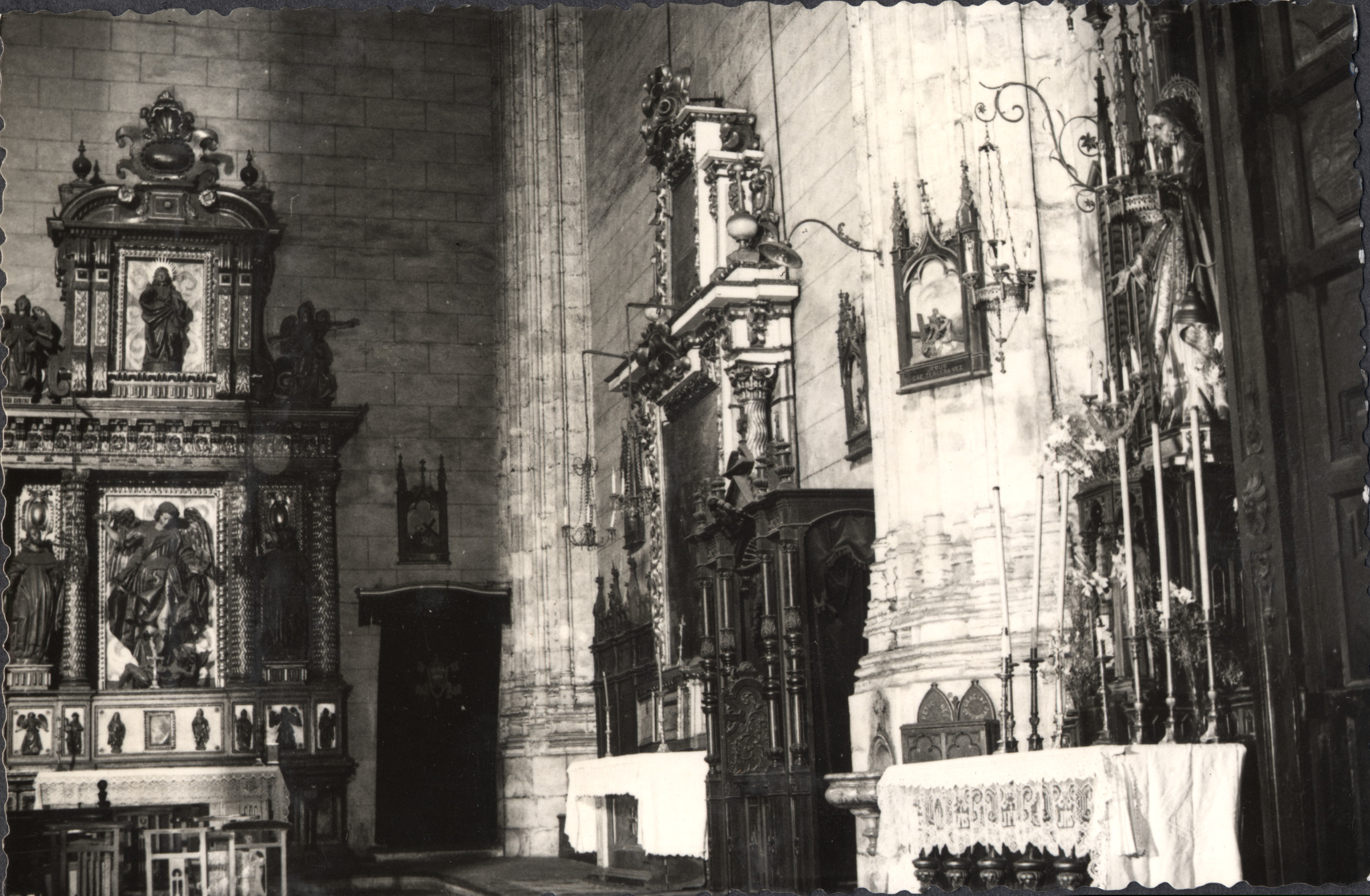 | San Pedro elizako altarearen ezker aldea. San Migelen alboko erretaula, aitortegia, altare eta erretaula txikiak. |