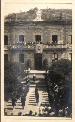 | Primo de Rivera etorri zen Domingo Martínez de Iralaren lapida aurkezpen ekitaldietan. Epaitegi aurrean egindako ekitaldia. |