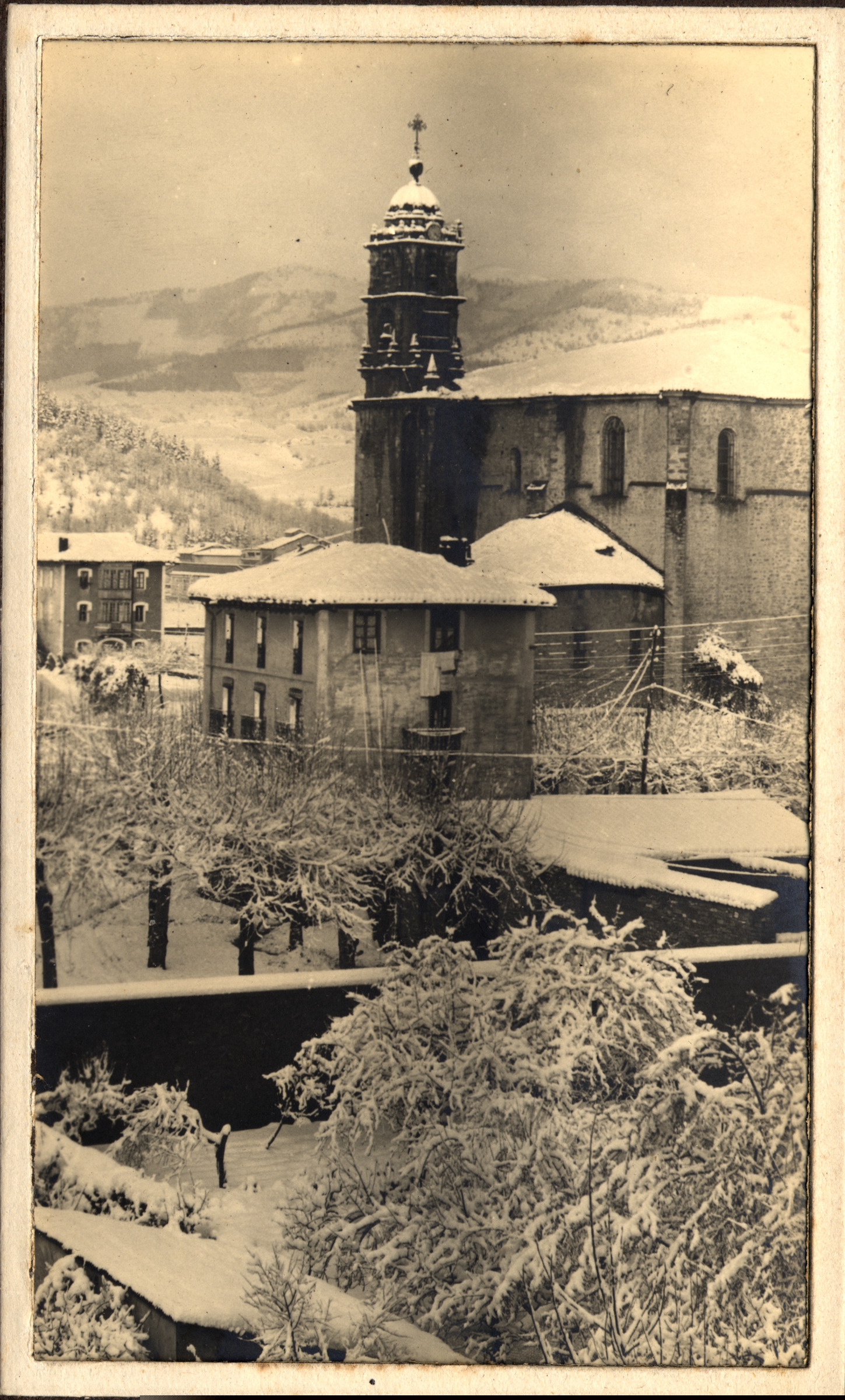 | Bergarako bista: ezkerraldean Kuartela; eskumaldean Santa Marinako eliza |