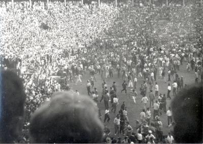 Zezen plazan jendea eta zezenak San Ferminetan |