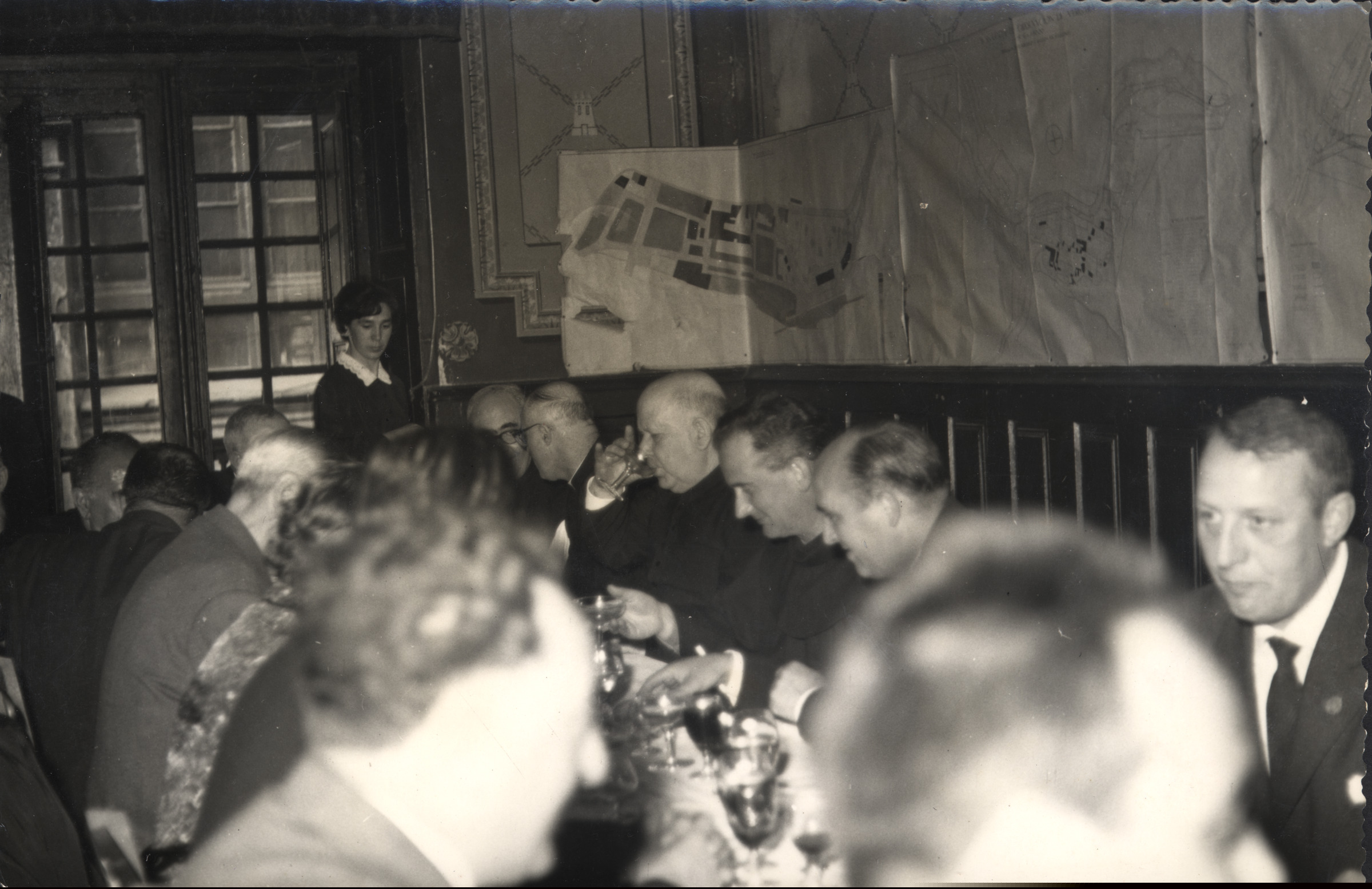 | Udaletxeko pleno aretoan bazkaltzen |