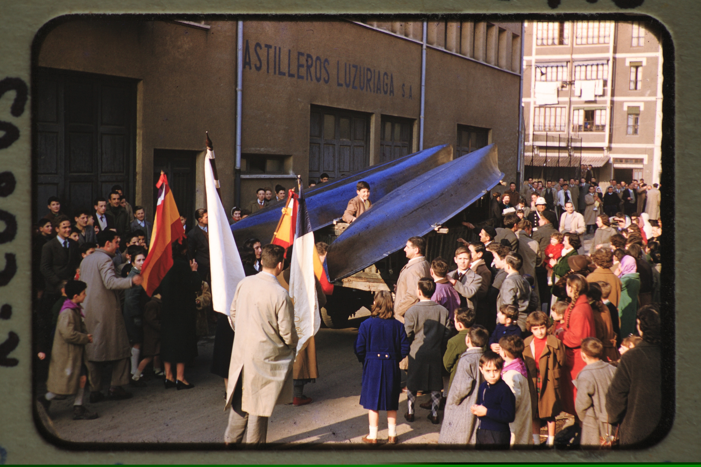 San Sebastian eguneko traineru-estropadak irabazi ondoren Pasai San Pedroko arraunlariei egindako ongi etorria | 20-1-57 Recibimiento vencedores (ILEGIBLE) |