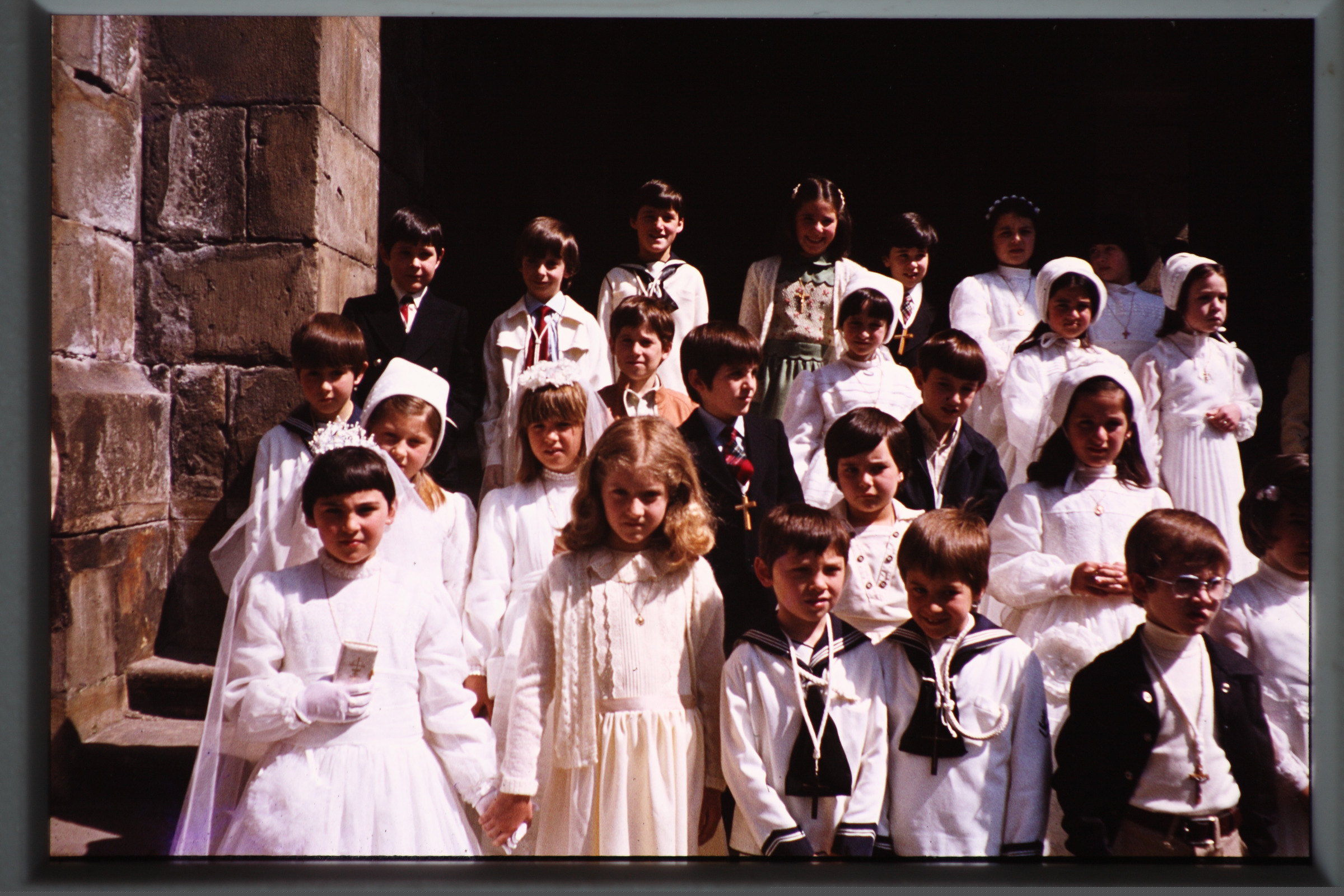 | Mutilak eta neskak lehenengo jaurnartze egunean San Pedro elizako eskilaretan |