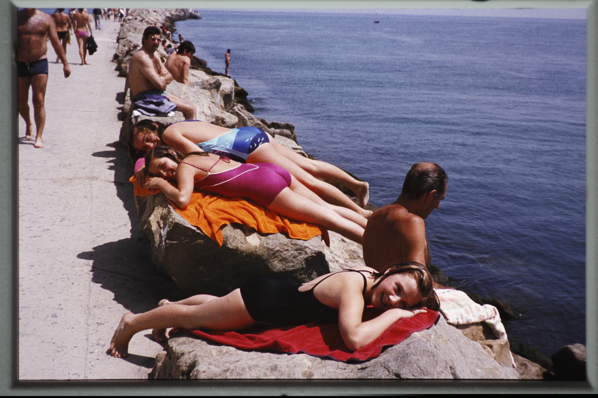 | Hondarribirako txangoa: neskatilak kaian bainatu ostean. |