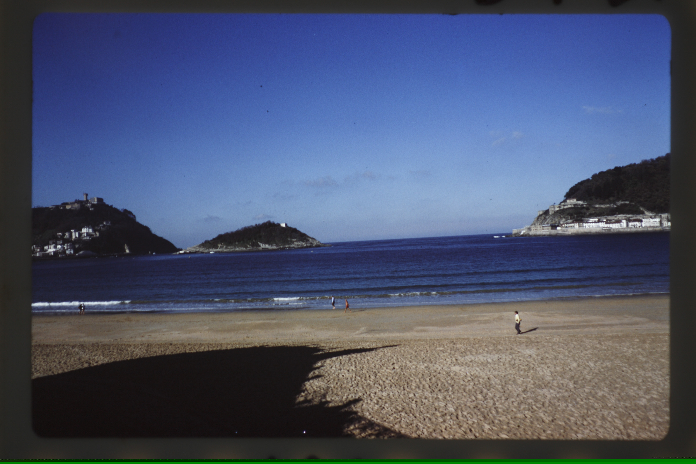 | Donostiako bista orokorra: Urgull eta Igeldo mendiak, eta Santa Klara uhartea. |