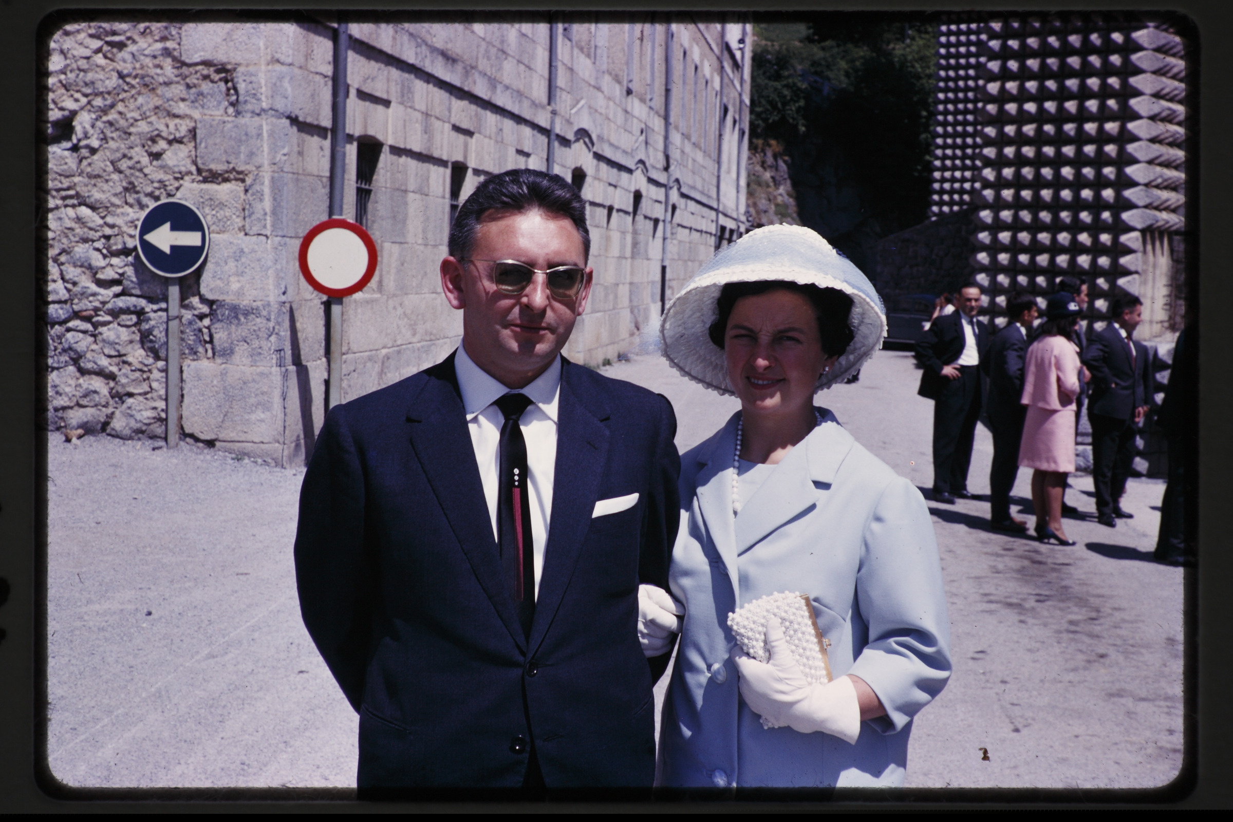 Manolo Pildain eta Carmen Gallastegi, Arantzazuko ezkontza batean. | 16-5-64 Boda (ILEGIBLE) |