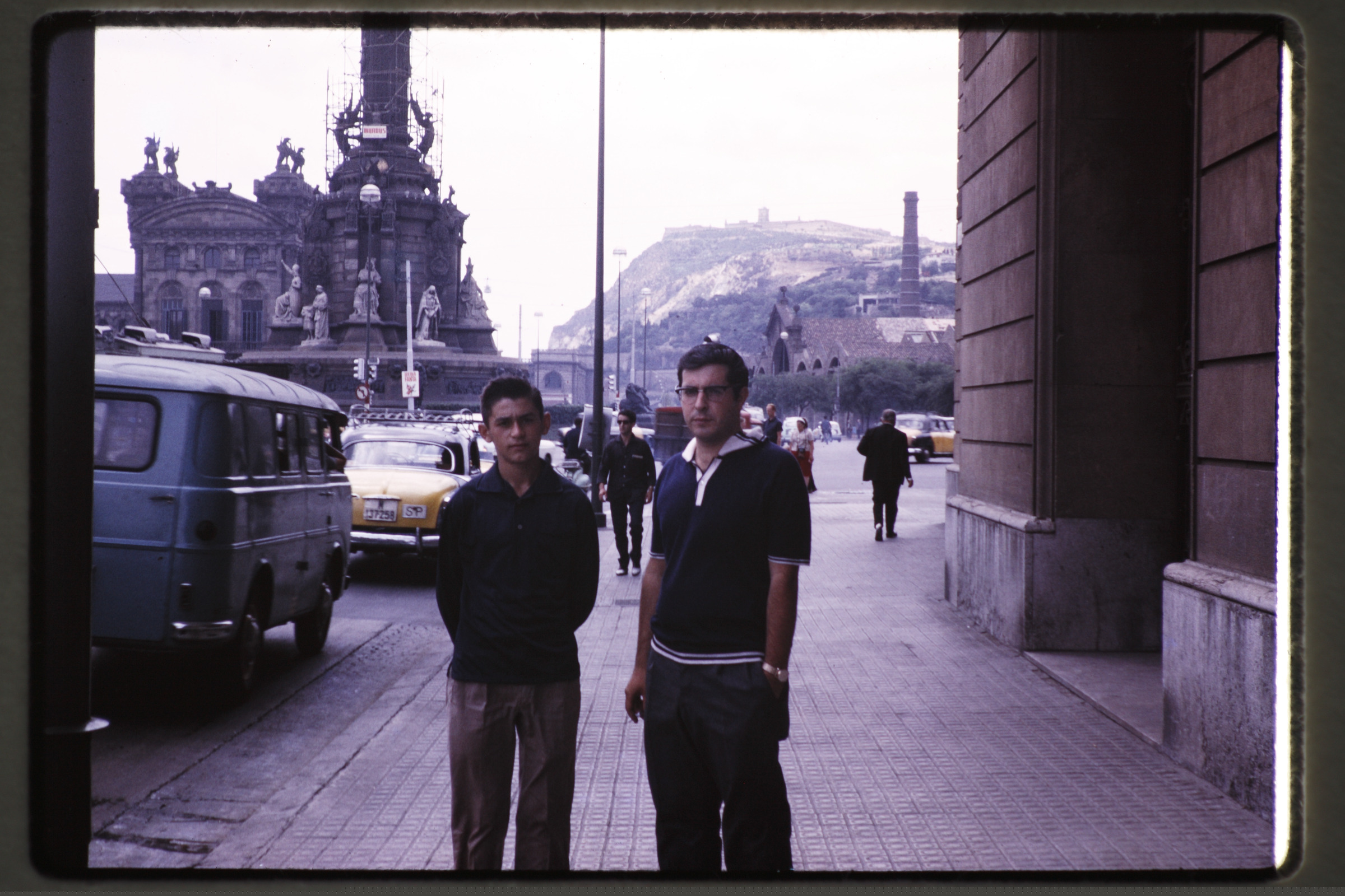 | Kataluniara egindako bidaia: bi mutiko, Kolon monumentua atzean dutelarik. | 9-8-65 |