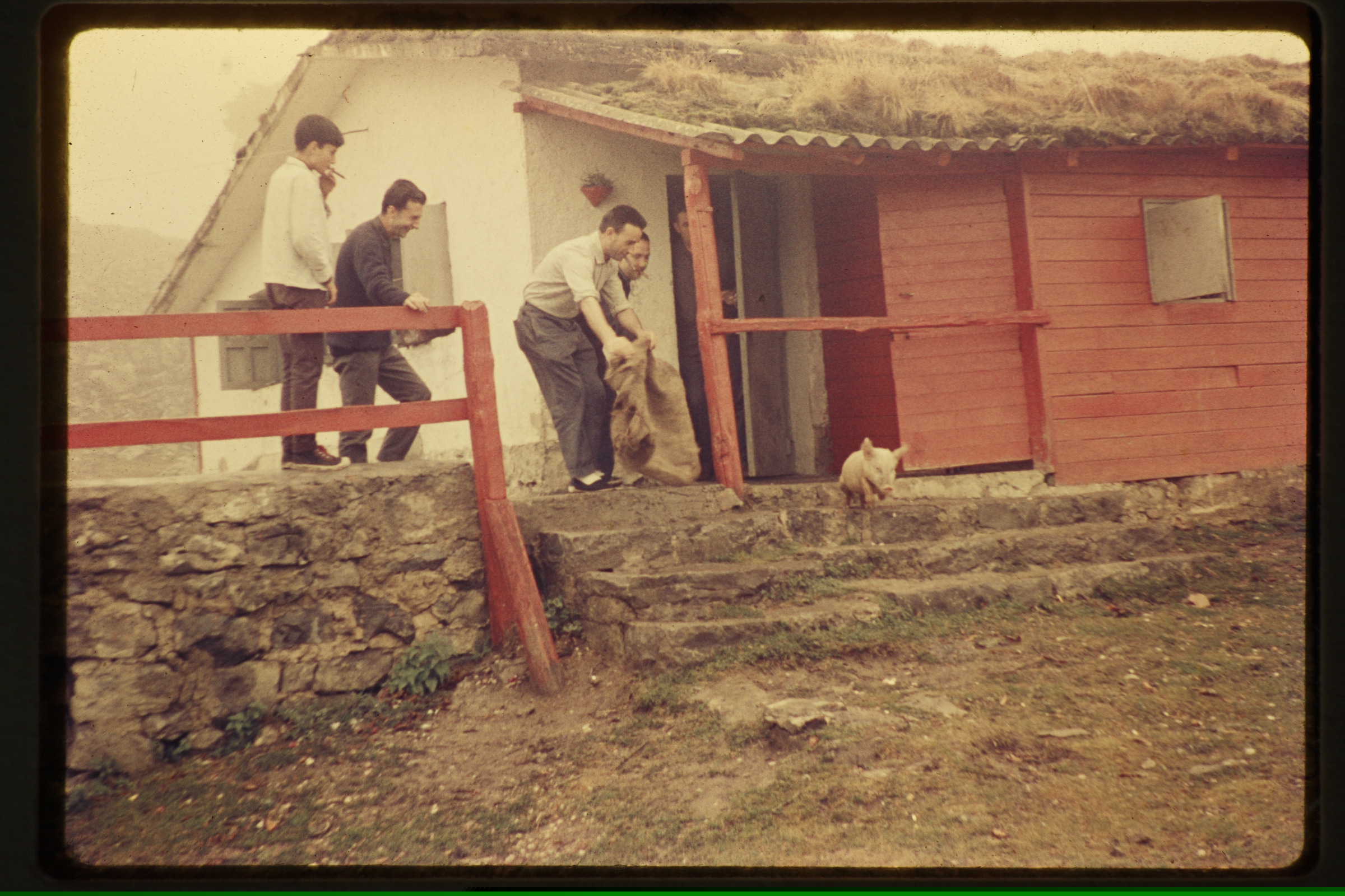Lau gizon txerrikumearen atzetik, aterpetxe batean daudelarik. | 17-8-65 |