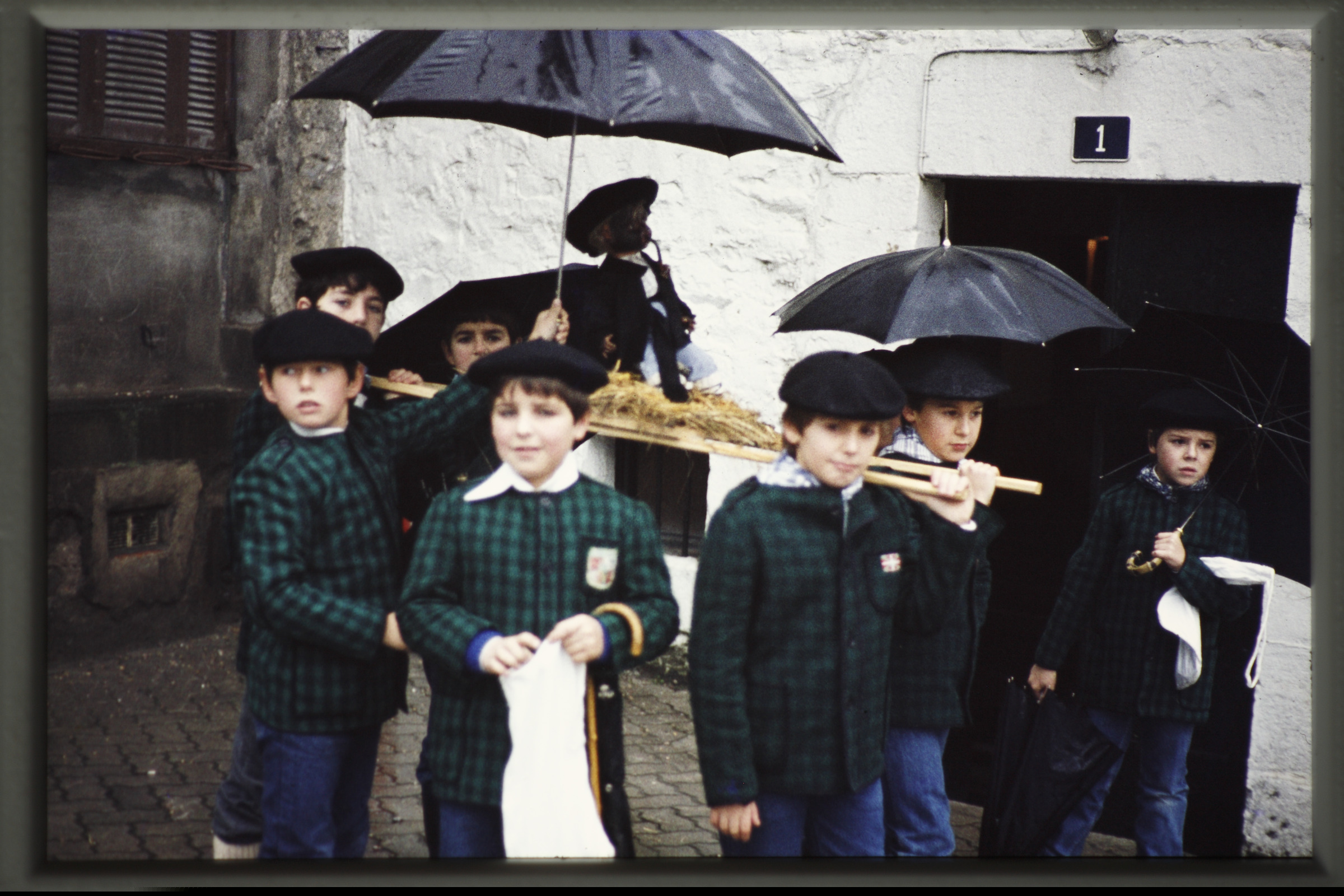 | Haur taldea, olentzeroa soinean eramaten dutelarik. |