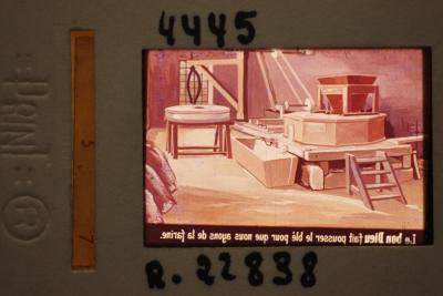 | Irina egiteko errota baten irudia. | "Le don Dieu fait pousser le blé pour que nous ayons de la farine" [Imp.r.] |