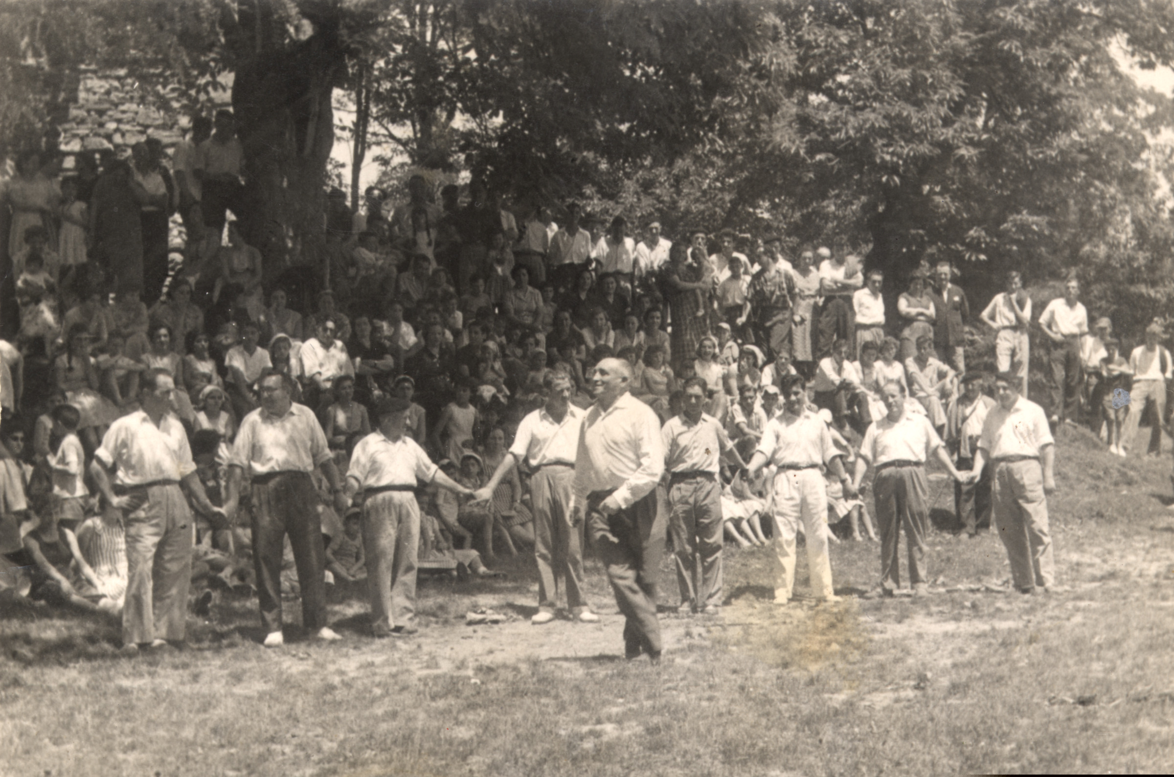 | San Martzialgo kanpan aurreskua dantzatzen |