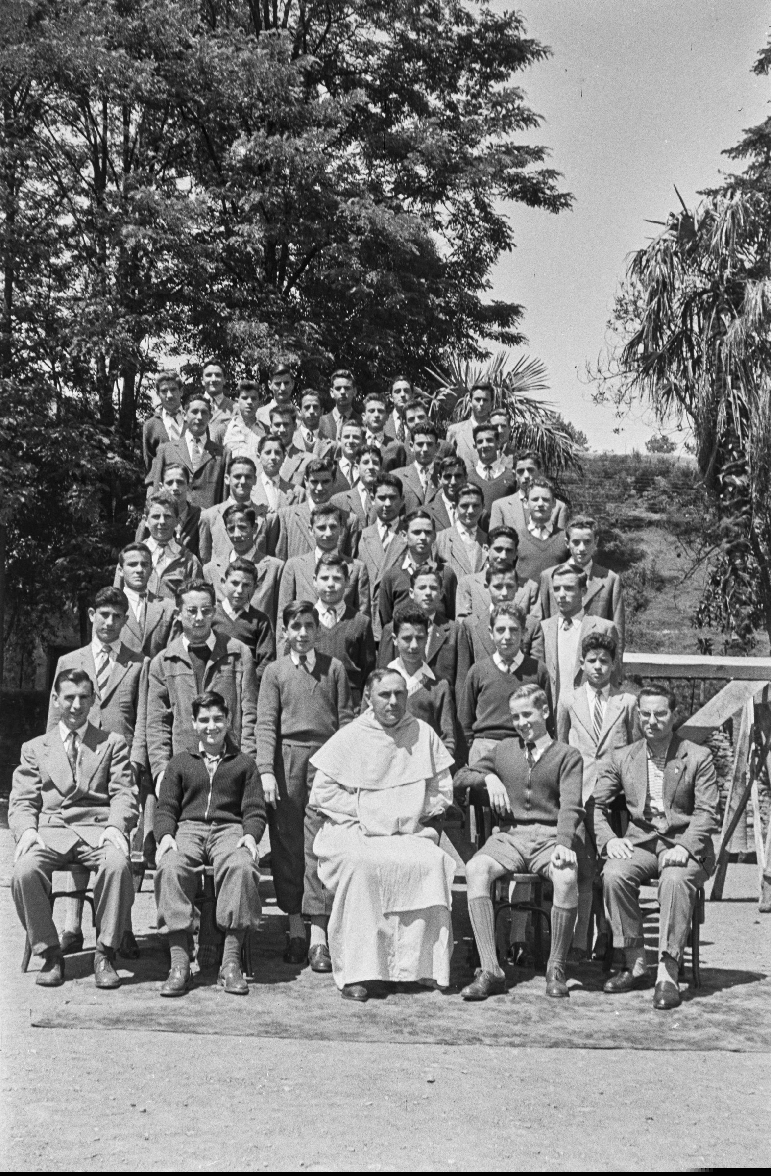 | Ikasturte bukaerako taldea: dominokoa eta ikasleak | Seminario, julio 1957 |
